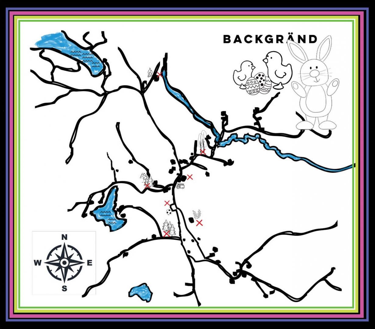 Studera kartan riktigt noggrant och närma dig de utmärkta kryssen med försiktighet och din bästa iakttagelseförmåga. Får du syn på typiskt påskiga tecken så vet du att ledtråden är nära!